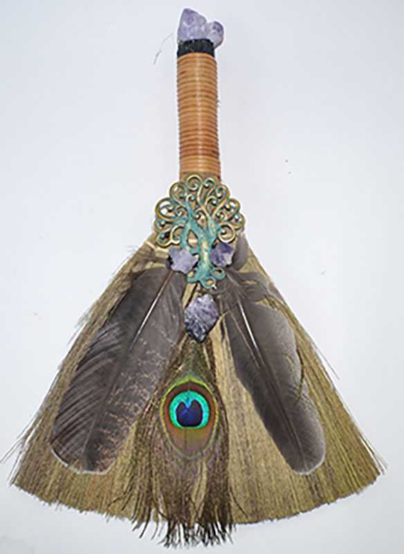 Sweep away negativity and invite positive energy with this 13-inch ritual broom, elegantly accented with a vibrant peacock feather and Amethyst crystals. Perfect for cleansing spaces, altars, or sacred tools, it combines practicality with symbolic beauty. The peacock feather adds protection, spiritual insight, and inspiration, making this broom a powerful addition to any ritual or magical practice.