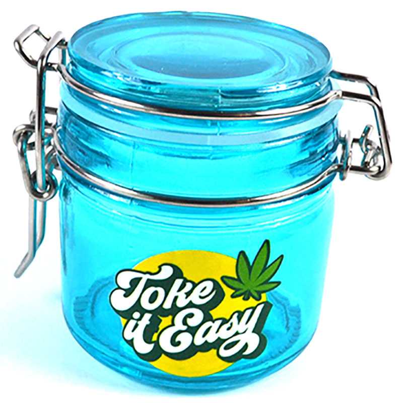 Check out this Toke it Easy dank tank air-sealed lock-tight jar! With its vibrant purple color, it not only looks cool but also keeps your goodies fresh and secure. Perfect for storing herbs or anything else you want to keep airtight, this jar combines style and functionality in one sleek package.