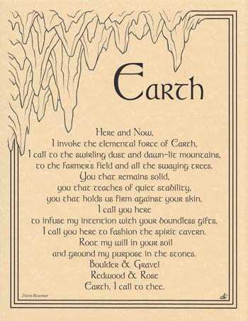 Call for the sturdy influence of the element of Earth with the words provided in the Earth invocation parchment poster, a handy reference for invocation within your ritual magic. 8 1/2" x 11".