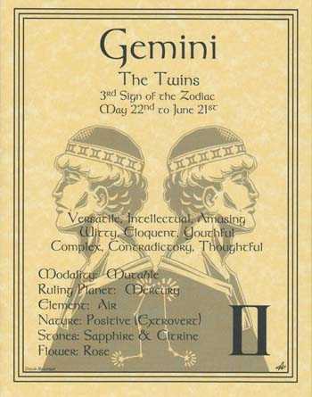A wonderful reference, the Gemini zodiac poster explores the qualities of the 3rd sign of the zodiac. 8 1/2" x 11".