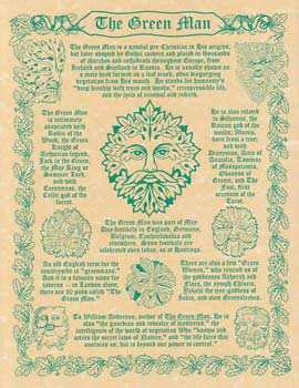 The Green Man " The Green Man is a symbol pre – Christian in his origins, but later adopted by Gothic carvers and placed in thousands of church's and cathedrals throughout Europe, from Ireland, Scotland to Russia." Quote from poster. Poster with history and multiple depictions of the Green Man. 8 1/2" x 11".