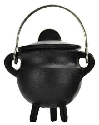 A black, cast-iron cauldron with a plain surface. Cast Iron. 2 3/4" x 3"