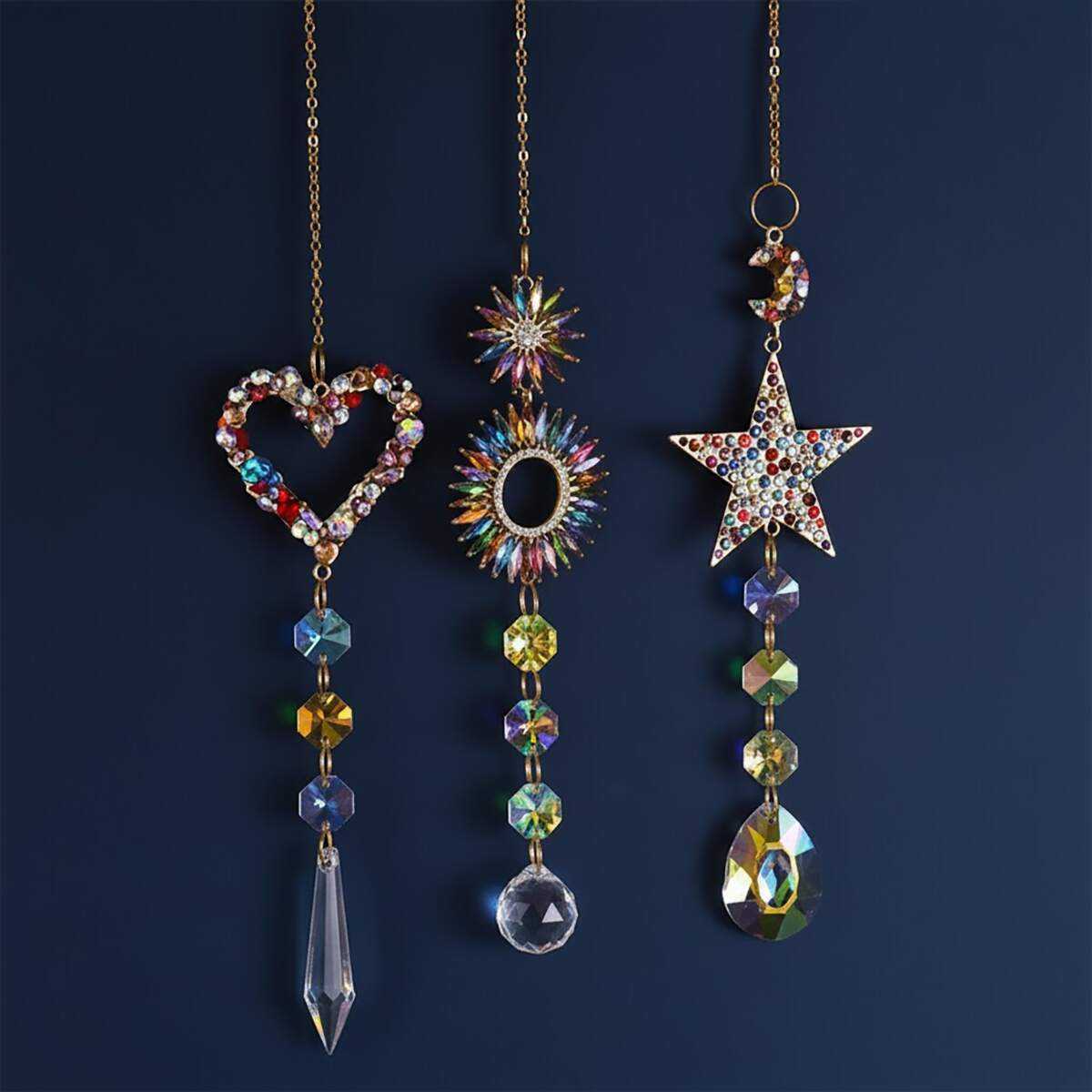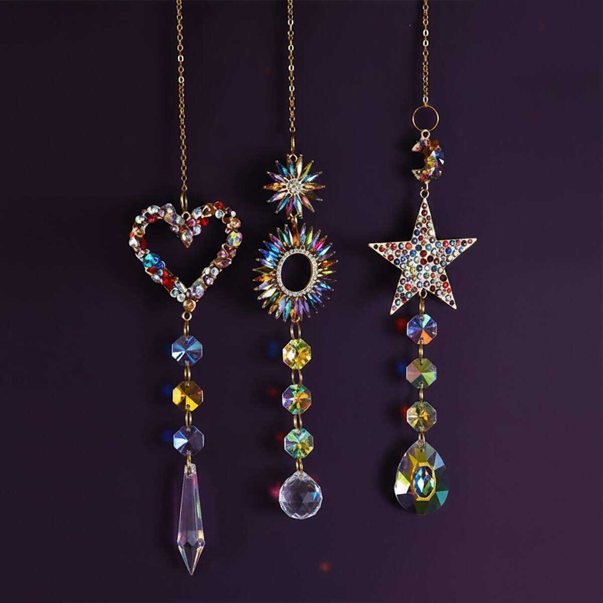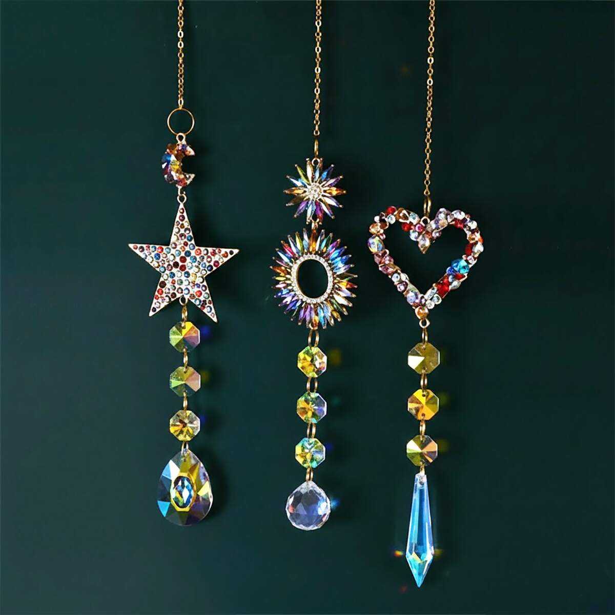 Now, each piece in this set of three suncatchers shines with gold-tone metal and bright multi color beads that glow in full sun. Then, the clear prisms catch clean light and send small rainbows into the room. Also, sunlight turns slow motion into a dance of color that lifts the mind.